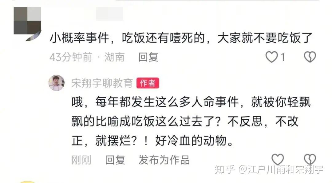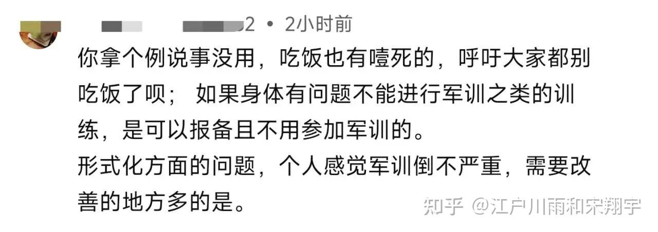 比如,我上个视频讲军训的形式主义,结果有人在评论区就说:因为吃饭能噎死人那就不吃饭了呗!
